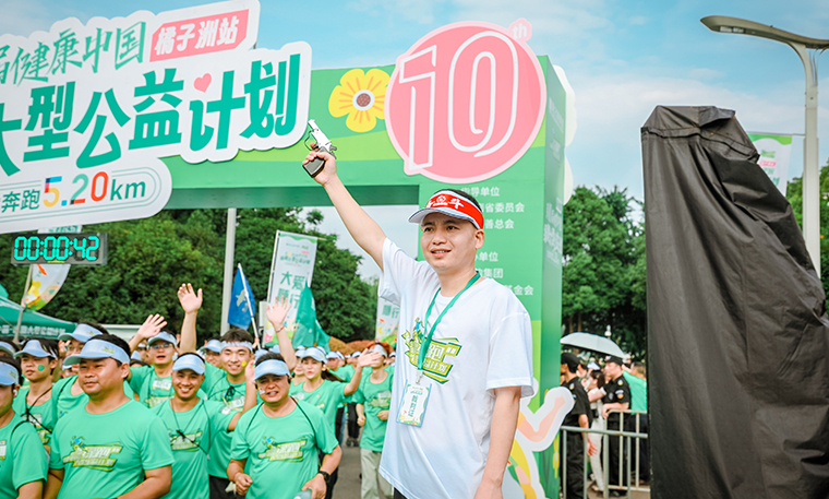 十載堅守,綠跑精神如炬火相傳,一路匯聚愛心與力量。啟動儀式上,奧運冠軍王明娟,世界冠軍羅丹,湖南省民政廳黨組成員、副廳長廖國核,致公黨湖南省委會副主委、長沙市政協(xié)副主席、致公黨長沙市委會主委黃鋒,中共長沙市委統(tǒng)戰(zhàn)部副部長、市政府僑辦主任成鋼,綠之韻集團董事長胡國安,總裁勞嘉,常務副總裁胡均安,副總裁夏運良,市場營銷中心總經理戴三省,常務副總經理梅其慧、綠之韻碧波庭創(chuàng)始人李水蓮等領導上臺拉動繩索,520個彩色氣球從“10”字造型的啟動臺中放飛,象征著“2025健康中國-綠跑大型公益計劃”正式啟動。