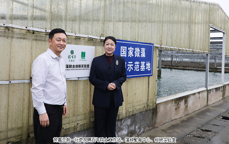 在簽約儀式前,勞嘉總裁一行應(yīng)邀參觀了賜百年院士工作站、螺旋藻繁育中心、藻種資源庫、光生物反應(yīng)器實(shí)驗(yàn)池及CNAS認(rèn)證科研中心,對(duì)賜百年在螺旋藻種質(zhì)培育、規(guī)?;B(yǎng)殖及精深加工領(lǐng)域的專業(yè)水準(zhǔn)給予高度評(píng)價(jià)。其中,院士工作站作為企業(yè)高層次科研平臺(tái),匯聚了微藻研究領(lǐng)域的頂尖專家團(tuán)隊(duì),為產(chǎn)業(yè)創(chuàng)新發(fā)展提供了強(qiáng)有力的支持。在簽約儀式環(huán)節(jié),勞嘉總裁與高志剛董事長共同簽署戰(zhàn)略合作協(xié)議,并為“綠之韻集團(tuán)-賜百年微藻聯(lián)合創(chuàng)新實(shí)驗(yàn)室”揭牌。聯(lián)合創(chuàng)新實(shí)驗(yàn)室將依托賜百年的尖端科研實(shí)力與綠之韻的產(chǎn)學(xué)研銷轉(zhuǎn)化優(yōu)勢(shì),聚焦螺旋藻功能成分提取與功效驗(yàn)證,共同推進(jìn)螺旋藻創(chuàng)新產(chǎn)品的研發(fā)與市場(chǎng)應(yīng)用。